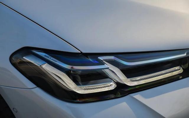 双“L”形的日间行车灯看起来也要更加的精神,这与大哥7系的设计如出一辙。值得一提的是,这辆试驾车选装了激光大灯,灯组上方的蓝色标识就能看出区别。