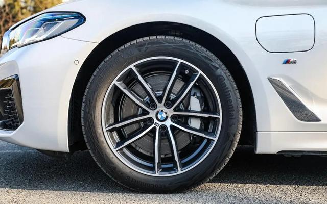 535Le车型强调的是节能表现,所以在轮胎的搭配上,与燃油版车型存在明显区别。试驾车配备了18英寸轮圈,造型还算不错,但整体的视觉效果自然不如530Li的19英寸出色。另外,535Le的前后轮胎尺寸是一样的,规格为245/45 R18,轮胎采用的是马牌的EcoContact 6,这款轮胎定位节能,主打的是省油,同时也有比较稳定的操控表现。