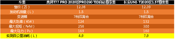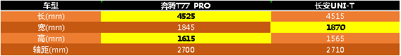 奔腾T77 PRO在售价上比长安UNI-T优惠100块的情况下,还能满足用户更多的配置需求,真是不比不知道,一比吓一跳。
