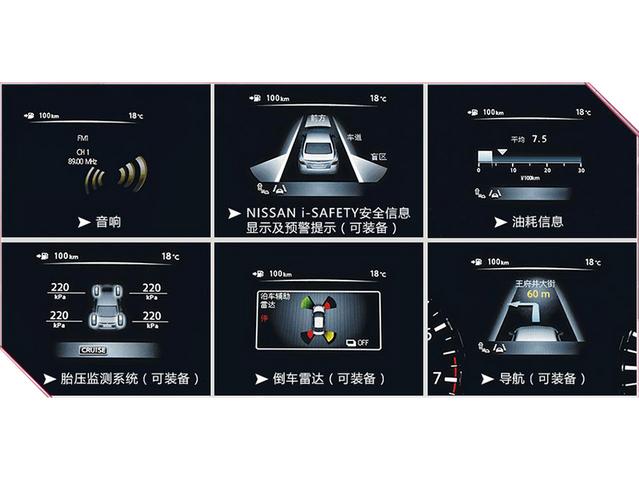仪盘方面,全新天籁采用了独有的3D平视信息显示屏,能显示包含NISSAN i-SAFETY智能防碰撞安全系统在内的重要安全信息,显示的十分信息丰富、直观。