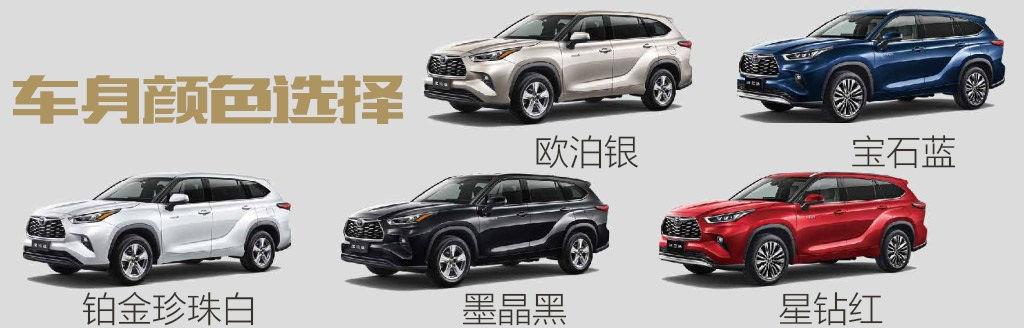 在车身颜色上,全新汉兰达提供了5种颜色可选,其中【欧铂银】色为此次的主打色,宝石蓝和星钻红也比较适合追求年轻动感的用户,而传统的白色、黑色同样没有缺席。