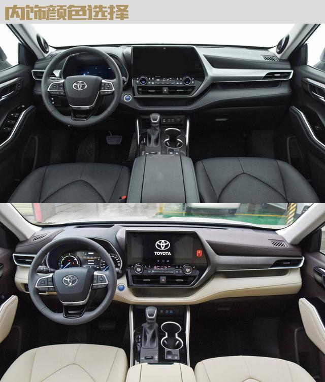 在内饰配色上,全新汉兰达只有黑色和米色两种配色。其中,精英版车型仅提供黑色内饰,其余配置则提供米色和黑色可选。作为一辆居家风格的SUV,米色内饰还是比较适合汉兰达的。