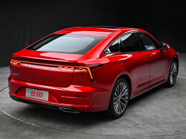 可以看到,新款奔腾B70在采用全新设计语言的同时,也恰到好处地将中国元素引入其中,看起来视觉感极强,并没有出现所谓的违和感。其前脸采用硕大的点阵式格栅、前后战国“戈”元素大灯组,配合贯穿式尾灯以及溜背式车尾设计和双边共两处的矩形排气布局,将运动感展现得淋漓尽致,看起来蓄势待发,战斗感十足。