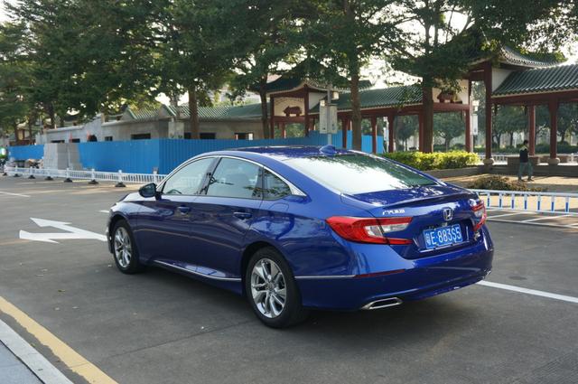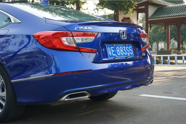 要说最“撩人”还是车身侧面!极具运动感的车身线条,散发着十足的力量美学。车顶轮廓在B柱之后急速下滑,形成溜背设计,配合延伸到车尾的立体式侧裙包围和旋风式的轮毂,完全就是一台中型轿跑车感觉。不光有强烈的视觉冲击,也很实用。更低趴的车身和顺滑的腰线,相比老款雅阁减少了3%的风阻,减少油耗。