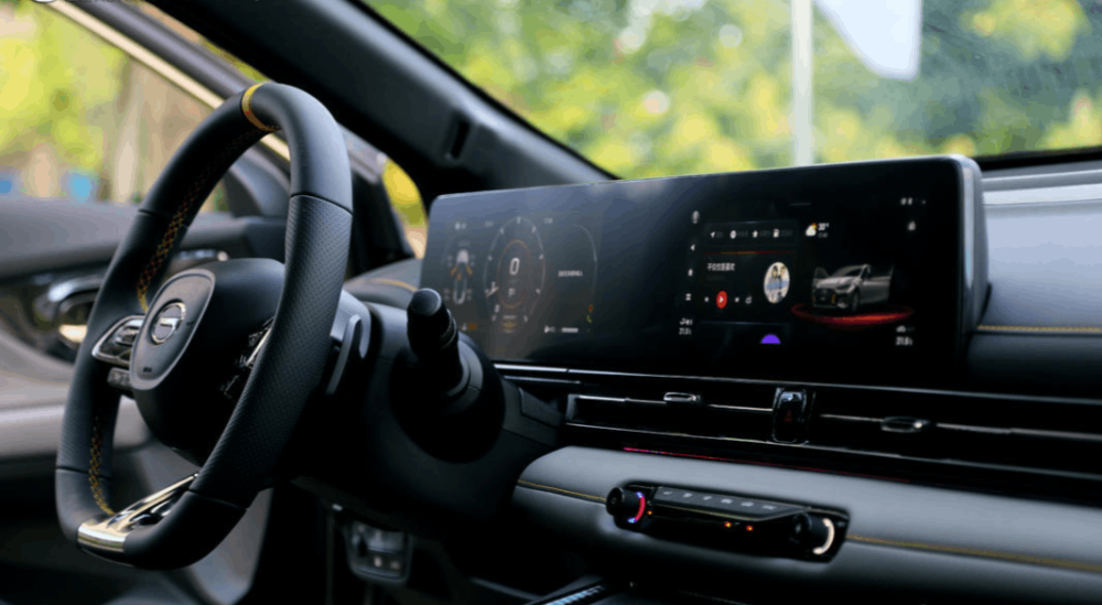 将视线转向车内,可以看到影豹采用的是双10.25英寸双联屏设计,并且取消了传统的仪表台帽檐,这使得我们开车时视野更为开阔,也进一步增添了车内的科技感。
