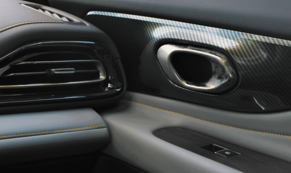 与此同时,在目光所及之处,影豹大量使用了碳纤维装饰面板以及皮质包裹,为车厢内渲染出极强的运动气息。其余像钢琴式按键、黄色缝线、黄色安全带以及镀铬门把手等配置,则是将车内的质感提高一个档次,让人完全想象不出这是一台10万级的自主轿车。