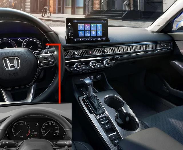 不过,就算思域两厢不引进,三厢版也是我见过最漂亮的思域,不是说外形而是内饰,这一代可谓翻天覆地,设计师终于把心思放在里面了。全液晶显示屏10.2寸、9英寸中控屏幕、三辐式多功能方向盘以及悬浮式设计的中控多媒体显示屏,中控台上采用了贯穿式的蜂窝网状金属装饰,并作为空调出风口。之前的思域实用性一流,就是谈不上精致,新一代会改观了。