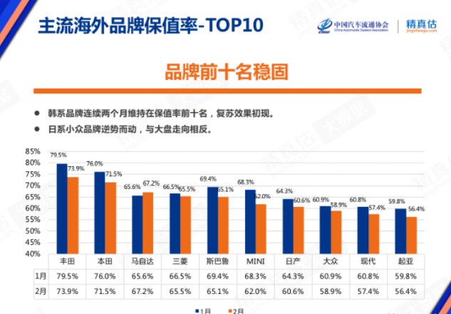 这份榜单我认为是没有问题的,是比较客观的调研机构出品的。丰田,本田在国内本身也是比较保值的。马自达,三菱,斯巴鲁,mini在国内的销量并不是很好,导致在国内的二手车保值率也不是很出色,所以这份榜单和国内的情况其实是有点差距的。当然了,日产,大众,现代,起亚,它们的排名相对来说还是比较客观的。