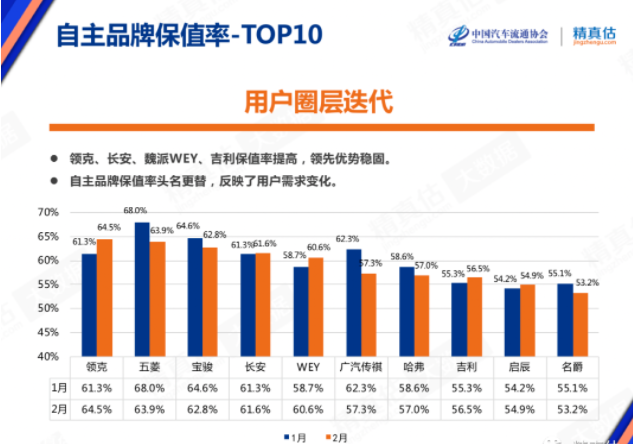接下来,我们再来看一看自主品牌里面的前十保值率排行榜,但是没有可靠性排名。