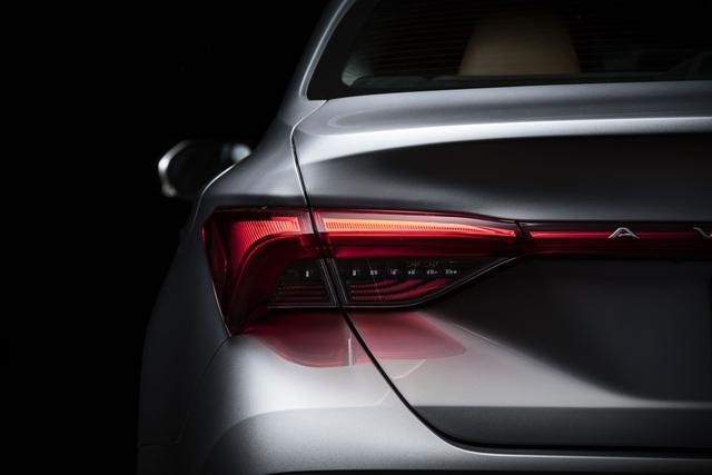 从前脸看去,相比于凯美瑞,亚洲龙巨大的前格栅更像雷克萨斯ES,不规则多边形的夸张构造让亚洲龙看起来更具攻击性,但是将Logo区域也包裹进前格栅的做法让亚洲龙不用像凯美瑞那样将前脸所有的线条汇聚在丰田的牛头Logo处。因此从总体来看,这台亚洲龙无论是实际车身尺寸还是视觉效果,其都会比同为丰田中级车的凯美瑞要更大一圈。
