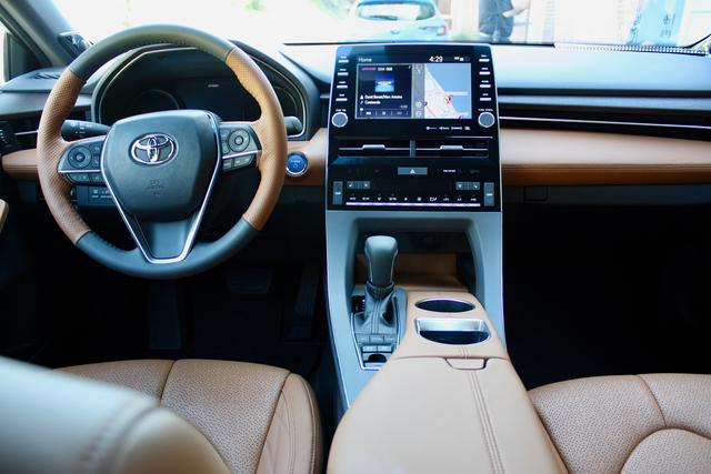 来到车内,我们的第一感受似乎也并不是进入到一台丰田车内,而更像是进入到一台雷克萨斯车内,连贯式的“T字”区域设计让这台亚洲龙的内饰看起来非常简洁,而操控中控大屏的所有按键都镶嵌在钢琴烤漆材质的面板上,尽管没有像众多美式车那样将按键设计成触摸式按键让整个屏幕面板更具整体感,但是这样的设计在不失美感的同时也提升了驾驶者“盲操”的便利性。空调出风口则像全新的奥迪车型一样做了贯穿式设计,即便实际出风口还是只有传统出风口的大小,但是在整车内饰美感的提升上却起了不小的作用。