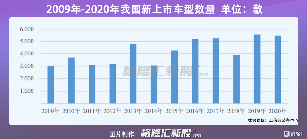 由于中国车企的竞争日趋激烈,在研发方面的投入不断加大,于是从2009年至今,中国每年新上市车型呈整体上升态势。在中国2009年就有3023款新车上市,到2020年增长至5465款。