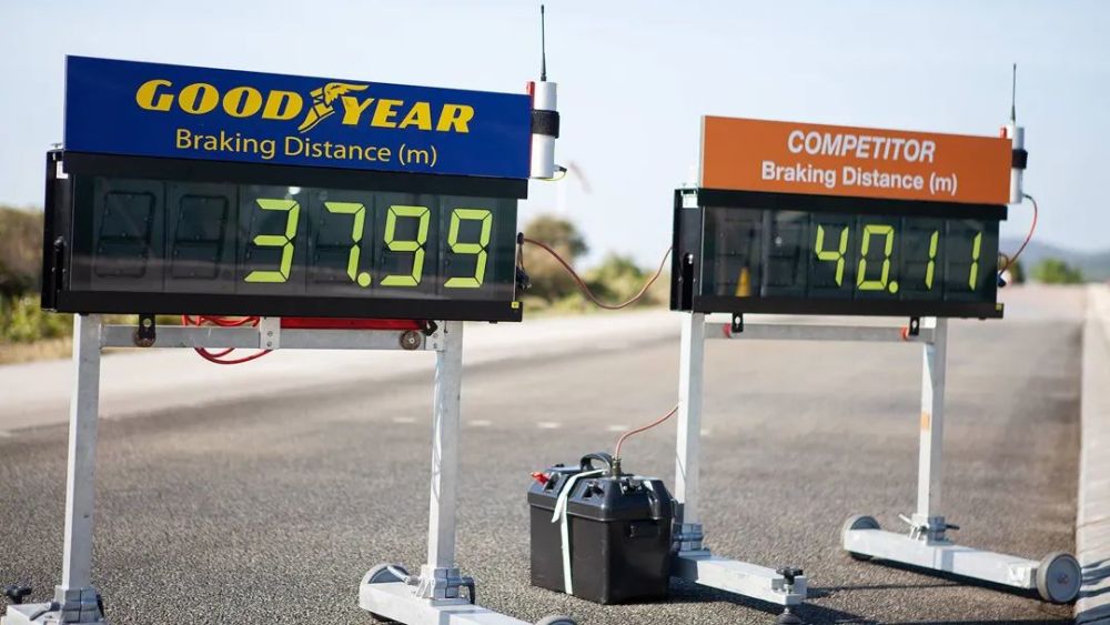 固特异强抓地配方能带来更强的路面黏着性,通过增加橡胶中硅的含量,以实现更优秀的操控以及制动效果,至于制动距离,这里卖个关子,请继续往下看。