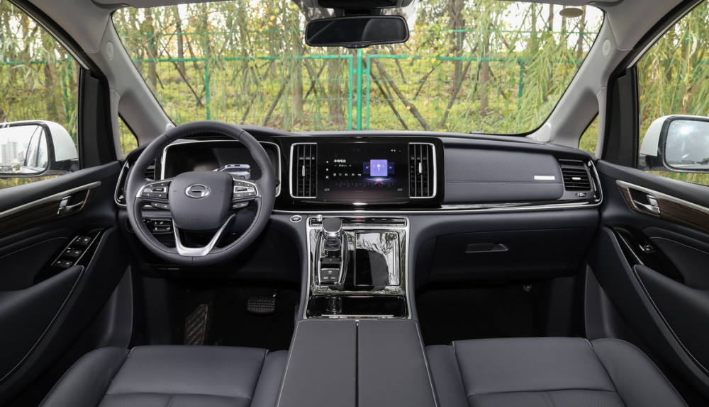 进入车内,游艇环抱式设计的中控台配上大量真皮材质包裹以及钢琴烤漆面板和镀铬饰条点缀,营造出非常强烈的高级感。具体来看,10.1英寸中控屏镶嵌在出风口中间,加入了ADiGO系统之后,传祺M8更有科技感,人机交互系统也变得更有时代感,并且可以实现与12.3英寸的全液晶仪表盘互联,能在仪表盘上直接显示导航画面。空调控制区域采用触控式和按键式组合,配合镀铬饰条装饰的三辐式方向盘以及精巧小巧的电子挡杆,档次感十分突出。此外诸如自适应巡航、360度全景影像、自动驻车、双天窗、电动后备厢、手机无线充电、主/副驾驶座电动调节、前/后排座椅加热/通风、车内氛围灯等豪华舒适配置一应俱全。