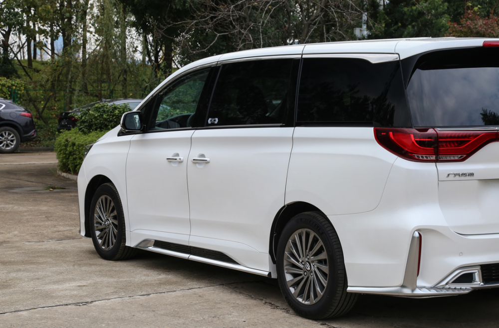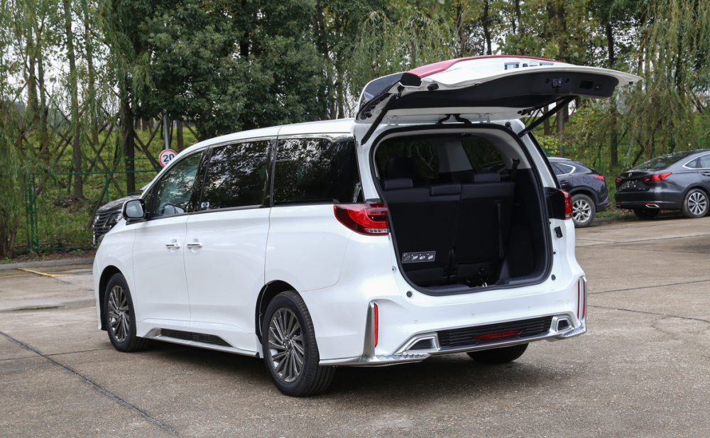 作为一辆称职的高端MPV,双侧电动侧滑门是最根本的,而隐私玻璃的加入,能一定程度上提升其档次感。另外锋锐的镀铬包围,再加上18寸电镀律动轮毂,就有种想低调但实力不允许的感觉。尾部的设计非常饱满,很有厚重感,最抢眼的莫过于贯穿式的尾灯,进一步拉宽了整车的视觉效果,点亮后也会显得更加精致。后包围则采用了与车头部分呼应的环绕式镀铬饰板,并且同样设计的棱角分明,给尾部增添了更多气势,同时配合着上方较多的横向元素,使得整个尾部看起来非常高端商务,而且层次感分明。