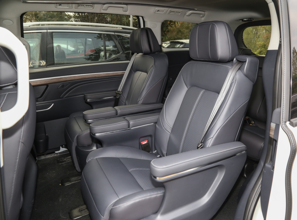 当然,对于商务MPV来说,第二排乘坐表现才是重中之重,而传祺M8在这方面也是下足了功夫。电动侧滑门打开后,迎宾踏板便映入了眼帘,其次便是两个独立的航空座椅,这两个座椅通过采用高级头层真皮打孔和宽大加厚座椅设计,尽显尊贵奢华,并通过优化座椅的发泡工艺和采用更加柔软细腻的面料,从触感上无限接近头等舱。另外还配有独立固定式宽大扶手,以及宽大的电动腿托、座椅通风、加热及按摩功能,通过腿托、靠背调节还能接近平躺姿态,无愧于“陆地头等舱”的称号,相比别克GL8也有过之而无不及。而得益于超5米1的车长以及3米的轴距,第三排座椅的舒适性表现也十分不错,并且还可以放倒或者百变翻折,进一步提升车内的实用空间。