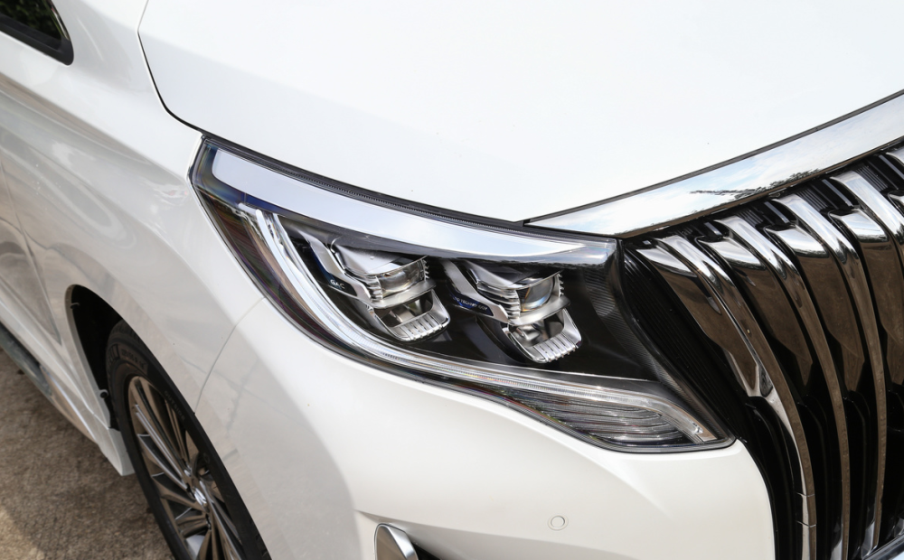 首先从外观来看,大尺寸的竖状镀铬格栅占据了M8大师系列整个车头大部分的面积,营造气势之余,还和两旁的矩阵式LED大灯形成了设计上的融合,官方称之为“震天翼”,再配合上前包围那独特的哑光银色饰条,无论是从气场还是从颜值上,传祺M8大师系列都足以跟丰田埃尔法、雷克萨斯LM来相媲美。车身侧面笔直的线条让车身充满商务气息,侧窗采用了传祺家族化的“隐藏式 ”D柱设计,打造出“贯穿式悬浮式车顶”,这一设计不仅使得整车侧面的观感更加修长,其最大的实际用处其实还是在于带来更敞亮的空间感。