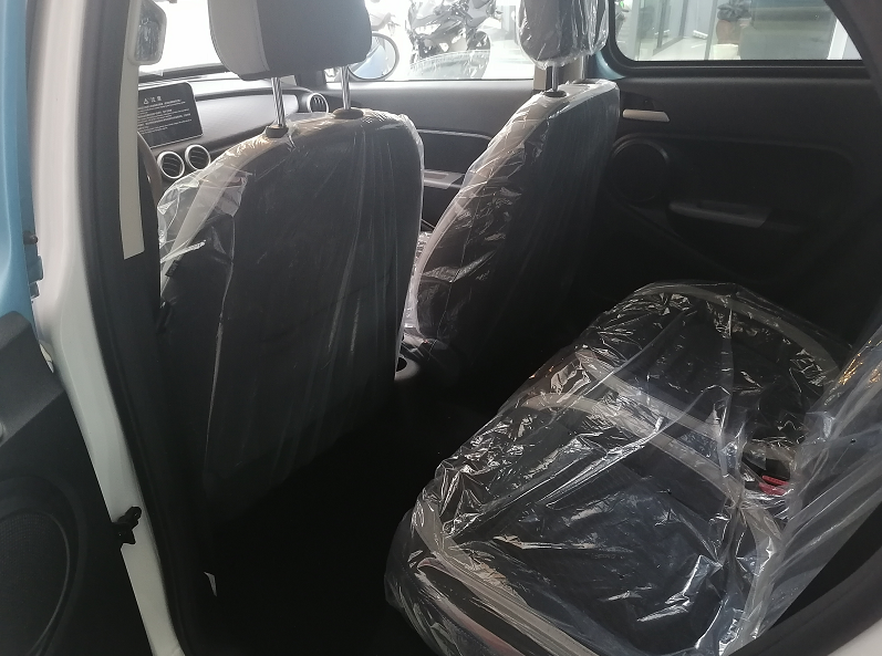 这辆欧拉黑猫的后排空间比较的紧凑,大家可以来看一下,只能说后排勉强乘坐成年人,乘坐的舒适度肯定不会高到哪里去,而且后轮还使用的是扭力梁非独立悬架,更加降低了舒适度。