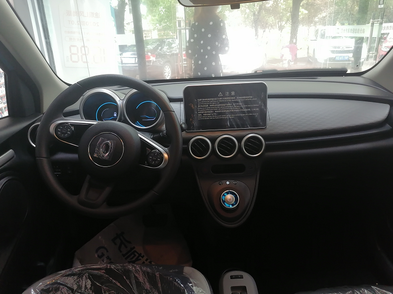 我们到店体验的这款欧拉黑猫采用的是蓝色加白色的双拼色外观设计,虽然叫做黑猫,但并不是黑色的。这款欧拉黑猫的整体外观设计特别的萌,我个人最喜欢的是它的大灯设计,非常的复古,圆形的设计在市面上已经比较少见了。而充电接口则设计在了前进气格栅的前面,支持快充和慢充。灯光配置部分,这辆欧拉黑猫比较低,全系采用的是卤素远近光灯,高配车型上搭载了led日间行车灯。
