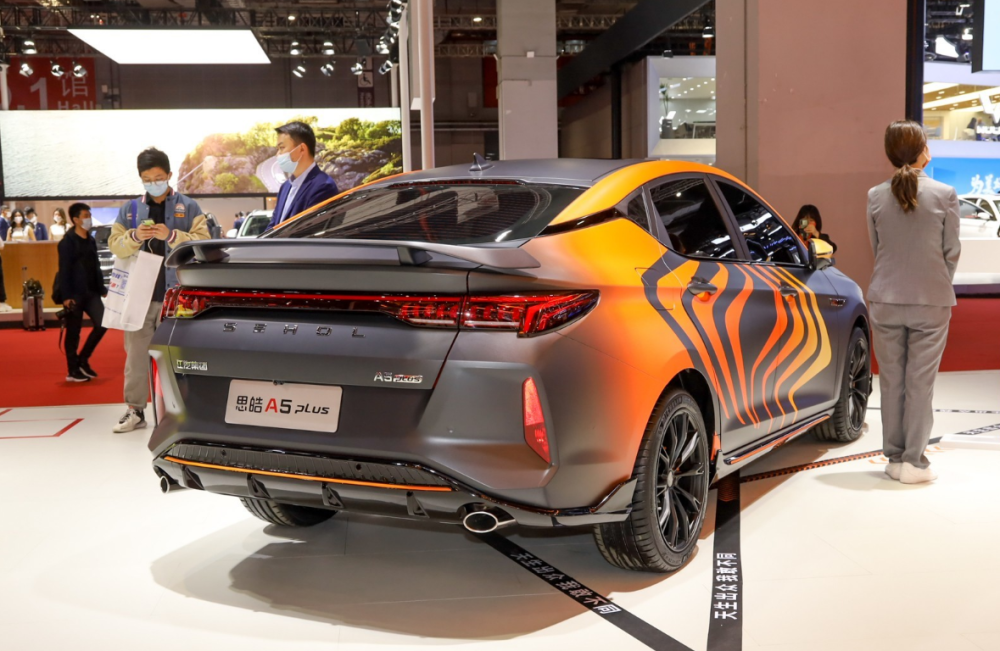 【思皓A5 PLUS正式定名为“曜”】思皓曾在今年上海车展上发布了一款配有运动外观套件的思皓A5 PLUS,日前从最新官方消息来看,该车被正式定名为“思皓曜”,并有望在8月份正式上市。新车前脸采用全新锋动美学设计,分体式格栅强化了层次感,贯穿式灯带与狭长的前灯组形成整体,矩阵式灯组内置142颗LED光源,由内至外微微上挑,显得十分凌厉,搭配下方“獠牙”式设计前杠以及红色前唇,营造出浓郁的运动属性。侧面延续了思皓A5的下倾式腰线以及掀背式设计,搭配Y字造型的轮圈,进一步增强运动属性。侧面延续了思皓A5的下倾式腰线以及掀背式设计,尾部采用了时下流行的贯穿式尾灯,底部扩散器还加入双边共两出排气。另外该车融入了大量运动化元素,例如红色包围套件、黑化/碳纤维饰条、熏黑轮毂+红色卡钳及大尾翼等。车身尺寸相比思皓A5有所提升,长宽高分别为4780/1820/1492mm,轴距为2770mm。内饰采用了T形布局,双拼色内饰营造出极强的竞技感,中央通道和竖置中控大屏做成了一体式设计,镀铬装饰的四幅式方向盘、换挡拨片以及赛道座椅等,带来了更强的驾驶乐趣。动力上搭载1.5T(低/高功率)发动机,高功率版本最大功率达到135kW(183马力),超过了本田思域1.5T车型。关于新车更多信息,我们将持续关注报道。