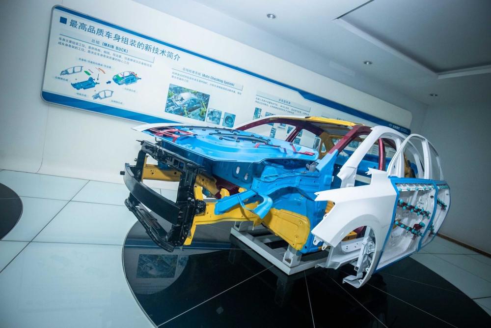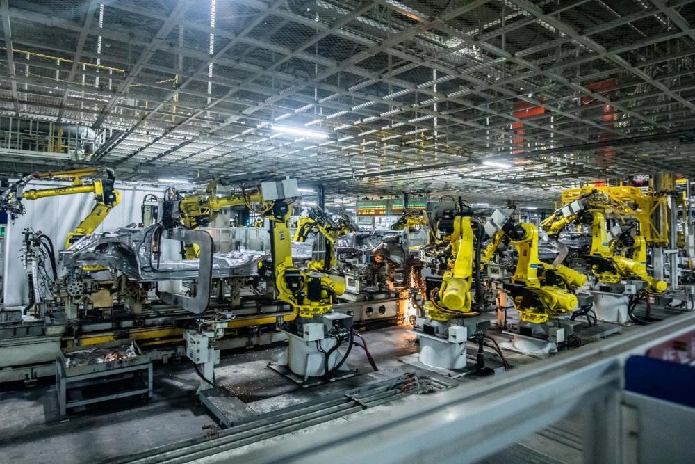 北京现代杨镇工厂的车身车间有461台机器人,年生产能力45万台,生产节拍78台/小时。生产线上忙碌工作的,都是重复精度在±0.3毫米以下的机器人,意味着产品制造一致性能够得到最大程度保证。在线检测是保证加工质量的重要环节,北京现代杨镇工厂安排机器人在线测定白车身精度,能够及时杜绝质量隐患。