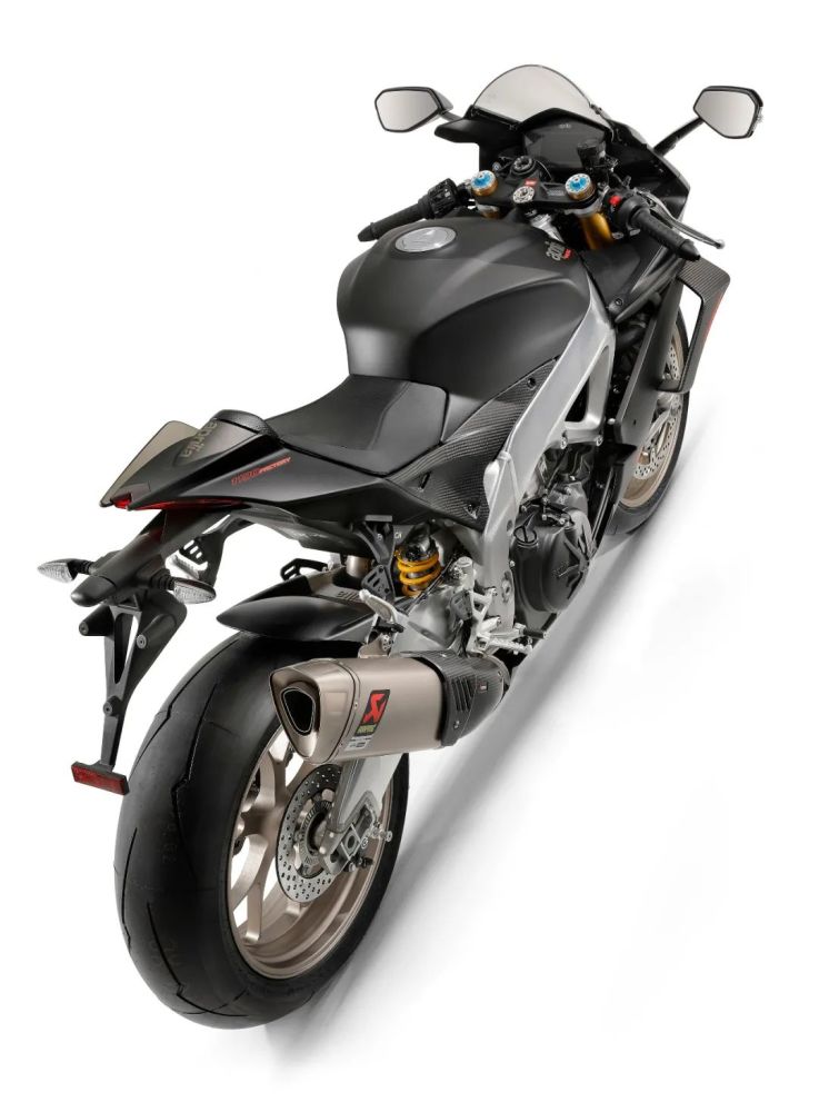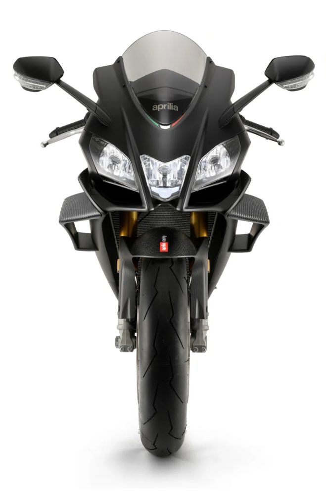 在扩大汽缸排量、显著增强动力的同时,阿普利亚还努力瘦身,为RSV4 1100 Factory添置了天蝎钛合金排气系统、锂离子电池、锻造铝合金轮辋、碳纤维材料制造的前挡泥板、侧罩等,从而获得异常轻盈的重量,净质量只有177kg;即使加满油箱,整备质量也不超过200kg。为了获取更加精简的造型,RSV4 1100 Factory采用了二合一式后视镜,即把转向灯嵌入到后视镜的背面。这样,一方面转向灯无须在车体两侧凸出,显得更加精炼;另一方面,得益于后视镜的较高位置,转向灯的识别度相应提高,更容易引起别人的注意。