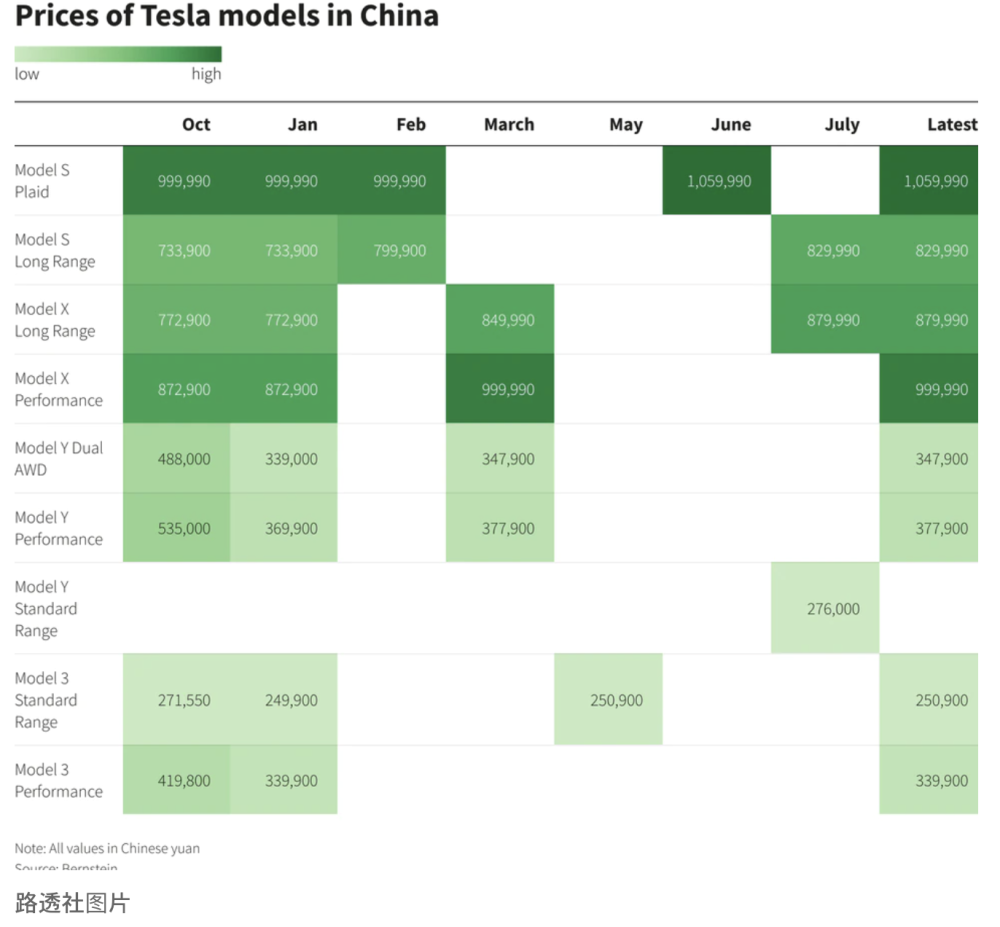据路透社追踪的数据显示,特斯拉今年在美国将Model 3 和 Model Y 的价格提高了十几次。与此同时,特斯拉在中国很少涨价,还在最近推出了一款价格更实惠的 Model Y 版本。