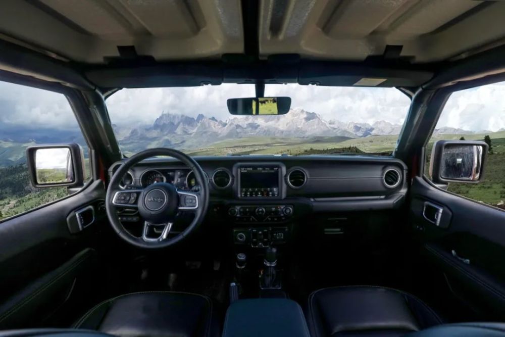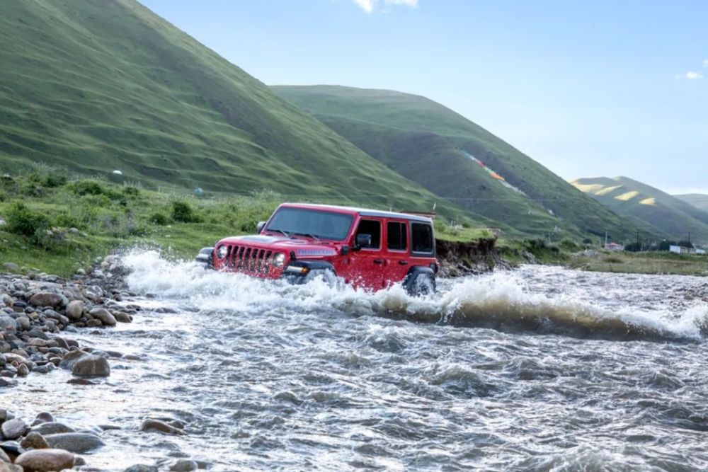 虽作为混动版本车型,但外观高度保留现款燃油版车型的硬派造型,标志性7孔进气格栅、复古圆形大灯,硬派复古气息依旧浓郁。不过,为彰显混动车型身份,新车在一些细节之处加入了蓝色“4×e”标识。