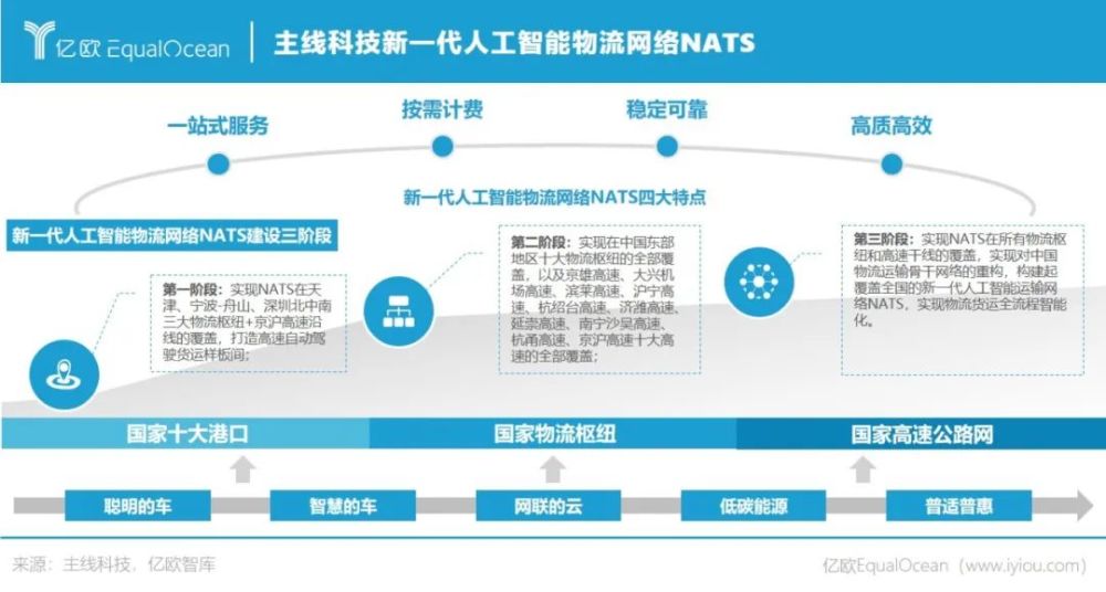 基于此,主线科技提出建设新一代人工智能物流网络NATS的战略,计划通过与科技物流平台、能源、汽车制造、交通基建等领域的龙头企业合作,逐步接入真实的货源运力系统,从而实现高速公路货运的全链路智能化,提供具备一站式服务、按需计费、稳定可靠、高质高效的自动驾驶卡车运力服务。