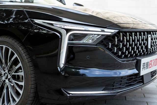 灵感源自中国古兵器“戈”的大灯造型,首先吸引到了我的关注,犀利中不乏流畅曲线的造型,配合LED日行灯炫目的光束,颇有几分锐气袭来。而与大灯紧密相连的数字雨滴中网,又很好地通过科技感缓和了视觉效果,让整车的前脸不仅运动感强烈,并且豪华感十足。值得一提的是,前机盖两侧接缝的造型,是由尾灯延伸到前风挡的曲线,看起来十分的别致和优雅,足以见得设计师对这台车的用心,也体现了奔腾对于制造工艺的自信。