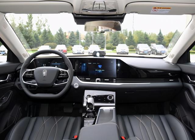 车内的设计同样延续了豪华感和科技感。首先映入眼帘的是双联中控屏,显示信息丰富,且功能性十足,再加上空调操控面板,形成了目前最为主流的三屏联动设计,凸显科技感。
