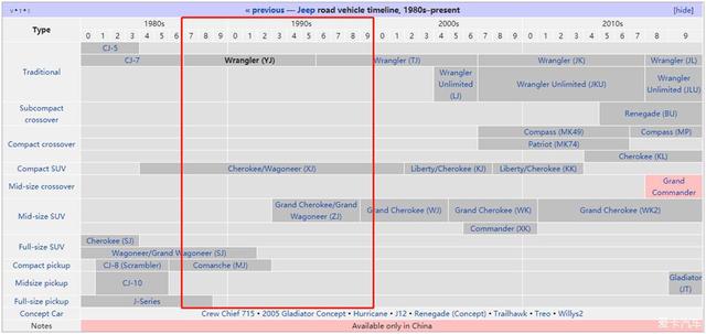 从列表可以知道,YJ诞生于1987年,1999年停产,它与CJ-7交集的年份里,会扯到一点关联性吗?