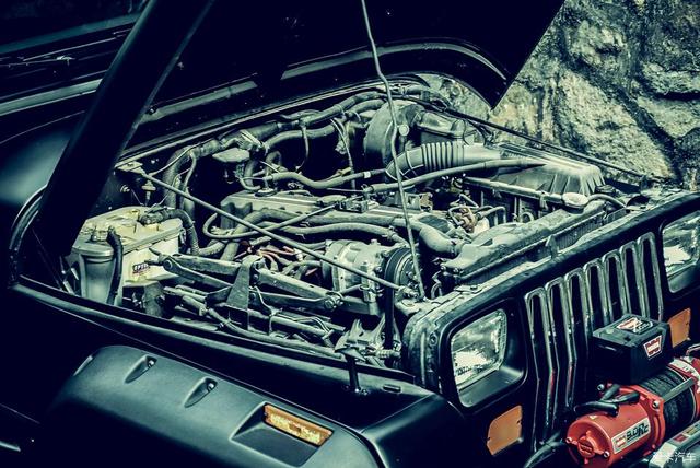 第一代牧马人的动力单元一共有三款——2.5L、4.0L、4.2L引擎,而大家看到的是这辆YJ搭载的是4.0L AMC 242216引擎。