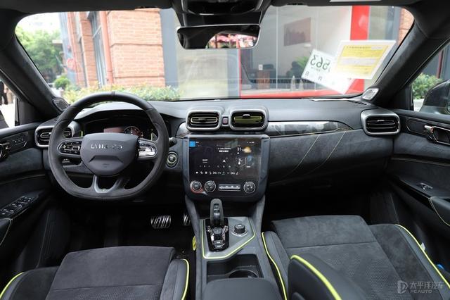 领克03+的内饰同样沿用了普通版03的造型设计,最大的区别在于覆盖件的材质,整体呈现出的质感与运动感有质的提升。外观主打色“炫燃金”也被融入到内饰配色之中,如空调出风口、中控台/门板/方向盘/座椅的缝线以及安全带等处均有应用,起到画龙点睛的作用,提升了内饰的活力。