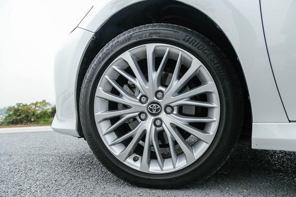 凯美瑞之所以可以取得优秀的制动成绩,一方面是制动系统给力,另一方面,是轮胎给力。2.5L顶配车型的轮胎,用的是235/45 R18的普利司通泰然者T005A。下面放一张轮胎的正视图。