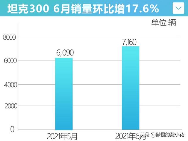 坦克300作为我们自主品牌目前最具热度的汽车品牌,如今在销量上也能够轻松碾压对手!根据数据统计显示,在刚刚过去的6月份,坦克300的销量超过了7千辆,达到了7160辆,这一数字也是这款车自上市以来的新高,而对比5月份,坦克300更是环比增长17.6%。总销量上,这款坦克300上半年累计销售新车达33073辆,目前订单量已经达到11万辆。在这个级别的车型中,坦克300绝对是头一个,而与它功能基本相同的牧马人,月销仅600辆左右,也就是坦克300在月销量上是牧马人的11倍。要知道它所主打的并不是真正的常规车,而是一辆高强度越野的专业级SUV。