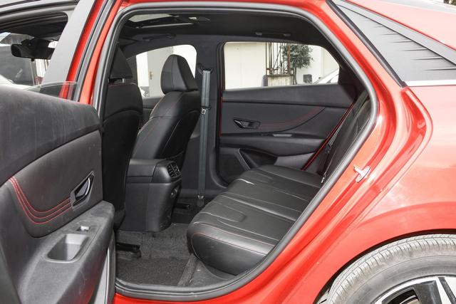 空间效果方面,第七代伊兰特车身三围为4680/1810/1415mm,轴距2720mm。后排乘坐空间非常宽裕,相比轩逸、卡罗拉更胜一筹。不仅如此,从尊贵版(指导价12.38万元)标配主驾驶座椅电动调节,前排座椅电加热,方向盘加热,更为提高乘坐的舒适性,而这也是竞品车型十分少见的配置。前后排均设计有USB电源接口,高配车型还伴随64色环境氛围灯,豪华氛围完全不输主流竞品。