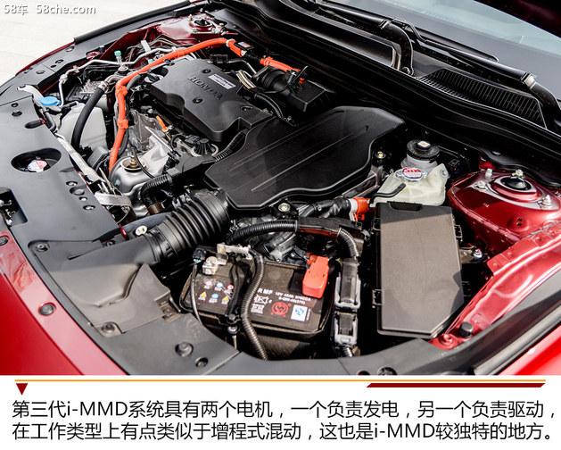 第十代雅阁采用了第三代i-MMD双电机混动系统,第三代i-MMD混动系统同样是由发动机、电池以及电机组成,不过相比于一般混合动力车的单电机,i-MMD系统具有两个电机,一个负责发电,另一个负责驱动,在工作类型上有点类似于增程式混动,这也是i-MMD较为独特的地方。 另外本田对系统中的2.0L阿特金森循环发动机进行了优化,发动机的压缩比也从此前的13:1提升到了13.5:1,从而可以得到更高的热效率。变速箱则使用了与上一台车型相同骨架的E-CVT设计,在驱动力上要比传统的CVT变速箱更具优势。