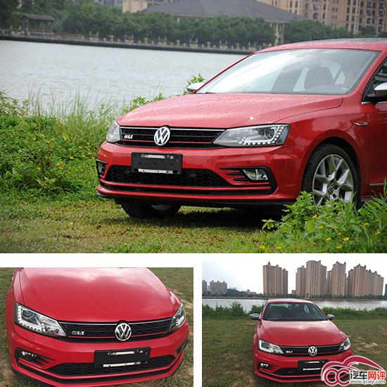 第七代速腾GLI,在外观上向着第七大高尔夫GTI 的感觉在靠拢了,红色车身彰显运动感,前脸采用前进气格栅的红色装饰条以及蜂窝状结构,新车在翼子板上设有GLI字专属设计,进气格栅采用了黑色蜂窝状设 计,格栅下部一条醒目的红色线条贯穿于前脸,并延伸到大灯内部,格栅左侧带有GLI专属徽标,视觉效果不错。新车的保险杠经过重新升级设计。外后视镜壳体 采用亚光镀铬处理,档次感瞬间提升。前大灯和尾灯都采用了现款速腾的设计LED日间行车灯和远近光一体式氙气大灯。