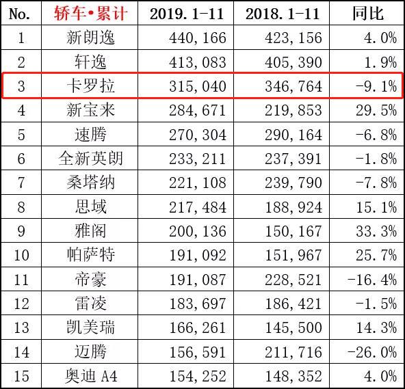 2019年,基于丰田全新TNGA架构打造的第12代卡罗拉问世,如今的它以3万多的销量居轿车榜单第3,仅落后于新朗逸和新轩逸,也许这两款车型将是卡罗拉永远难以逾越的"高峰"了。