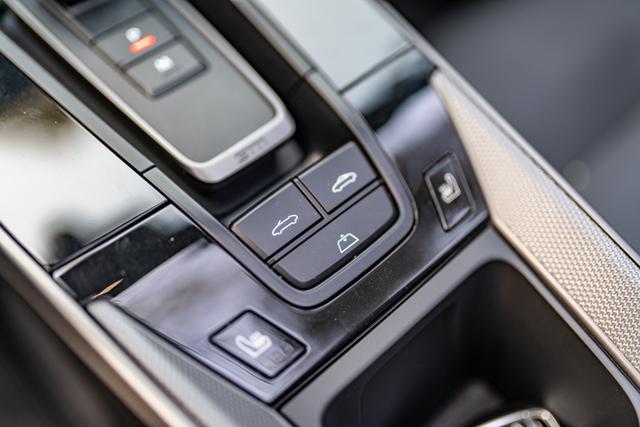 开关敞篷的操作按键放置在档杆后方,以便于驾驶员随时操作,两个独立的开关篷按键也不怕会误操作,下方这是后风挡的开关。持续拨动开篷键完成软顶篷的开启,整套流程下来大概12秒左右,时速 50km/h以下均能实现开闭篷的操作。