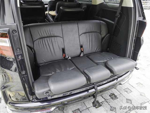 来到尾箱我们可以发现有一处向下掏空的空间。它的好处就在于,当第三排长期处于闲置状态的时,可通过折叠翻转放倒收纳,使得掏空的部分得到完美贴合,不浪费一丝的空间,并且还能获得一个纯平的地台,这是相当巧妙的一个设计。以至于后来有不少MPV都借鉴它的设计,可见本田对于空间的理解是多么的透彻。