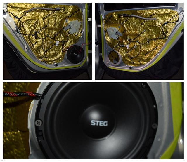 一台西玛S600功放音效处理器,推前后门两套高性价比喇叭(一共4个高音和4个中低音),这套方案配置简单,音质提升明显,适用于所有车型。车门隔音主要解决风噪问题,为聆听音乐提供一个更安静舒适的环境。英国CV和意大利史泰格喇叭,都是非常不错的进口音响品牌,用料和做工都非常考究,声音清晰通透。