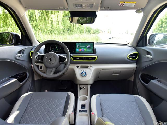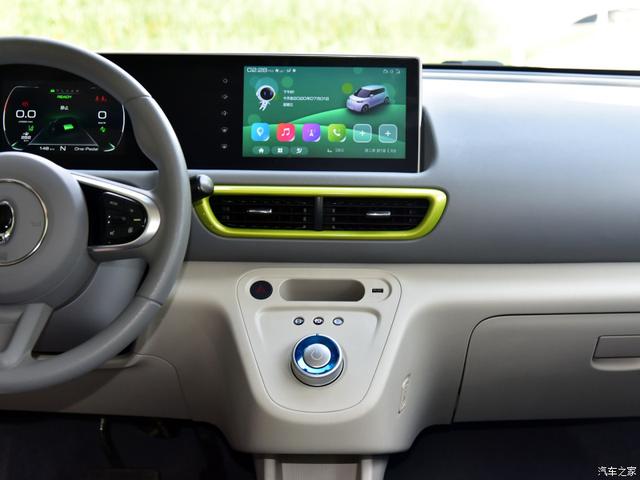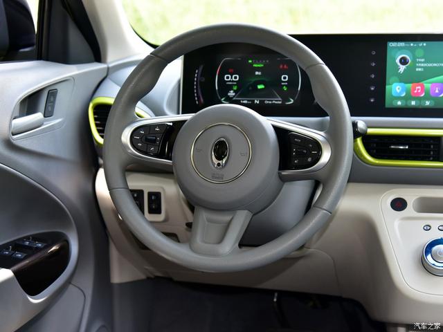 内饰上,欧拉白猫主打的是当代时尚极简风格,在设计感以及用料上却没有马虎,丝毫看不出廉价的感觉。三幅式多功能方向盘,尤其是中间设计成圆形,增加了一点俏皮的感觉。7英寸液晶彩色仪表加9英寸中控的双连屏显示,加上缝线处理的座椅,营造出一定的豪华感。在看一下这台车的具体内部配置上,欧拉白猫的换挡方式非常简单,采用旋钮换挡机构,只有D,R,N三个档位,方向盘支持手动上下调节。多媒体屏幕支持手机互联,语音识别,OTA升级,此外还加入了无线充电装置。