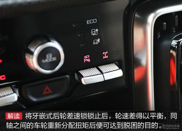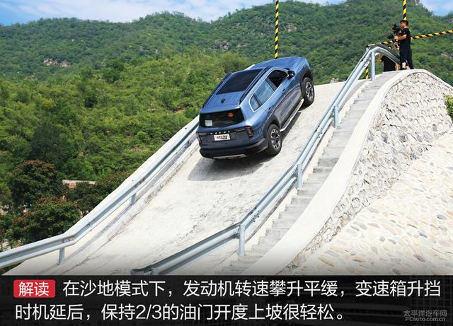 对于那些对“越野”没什么概念的人来说,一个专业的驾驶模式场景就显得尤为重要了,其实各驾驶场景的标定都是通过变速箱换挡指令以及发动机动力输出作为基础内容去扩展而来的,在这其中,沙地模式会控制发动机转速上升的幅度,并适当延后变速箱的升挡时机,只要右脚听使唤,稳住油门享受征服驼峰的感觉就行了,恰好这也是大狗所追求的。