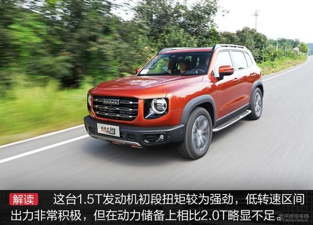 此次道路试驾只针对1.5GDIT车型,据哈弗官方透露,9月先行上市的也是这款动力配置的车型,这款1.5T发动机的最大功率达到了124kW(169PS),在1400-3600rpm时可以爆发出285N·m的峰值扭矩。相比哈弗H6上的那台同款高功率1.5T发动机,两款车型在功率和扭矩的调教方面略有不同,而与之匹配的7速双离合变速器,则让我们看到了哈弗的进步。