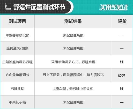 二、舒适性配置测试环节