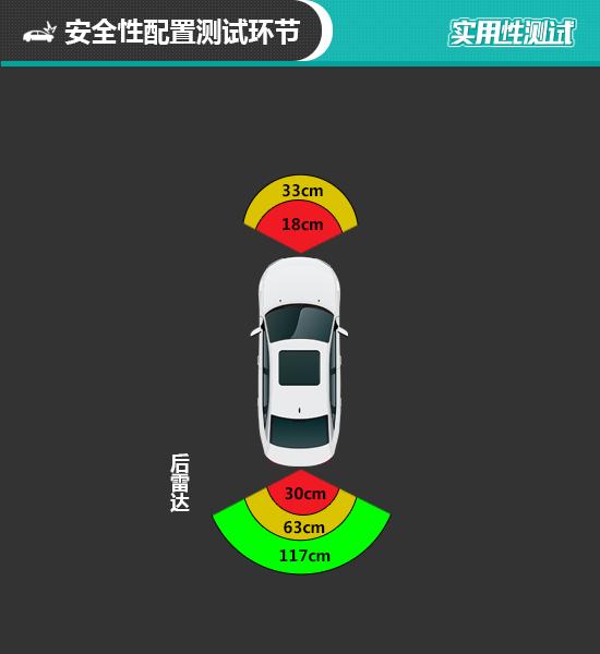 欧拉白猫配备了三段式倒车雷达,在测试过程中,倒车雷达最远在117cm处可以感应到后方物体,每段距离间隔掌握较为均匀,易于驾驶者做出判断。参考往期测试经验,持续蜂鸣阶段越接近25cm则越贴近日常使用习惯。从实测数据来看,欧拉白猫持续蜂鸣提示距离为30cm,相比经验值会略远一些,但差距不大。
