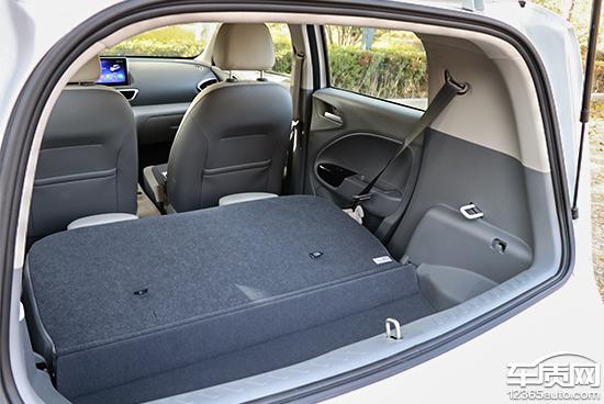 此次测试的欧拉白猫可以通过后备箱按键和遥控钥匙开启后备箱。后备箱内部空间虽小,但较为规整,同时后排座椅支持整体放倒,从而进一步提升了后备箱空间的扩展能力。