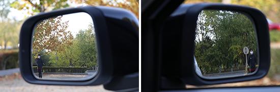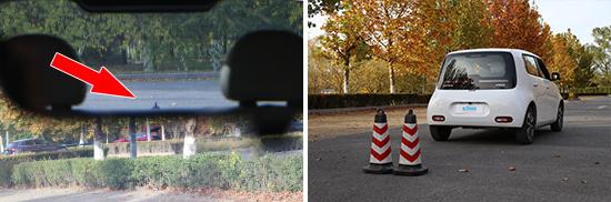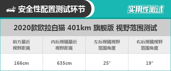 欧拉白猫的后视镜面积较大,虽然没有配备双曲镜面,但依然对后方视野有着不错的的可视范围。最终测试结果为左侧25°,右侧为19°,属于同级别车型平均水平。